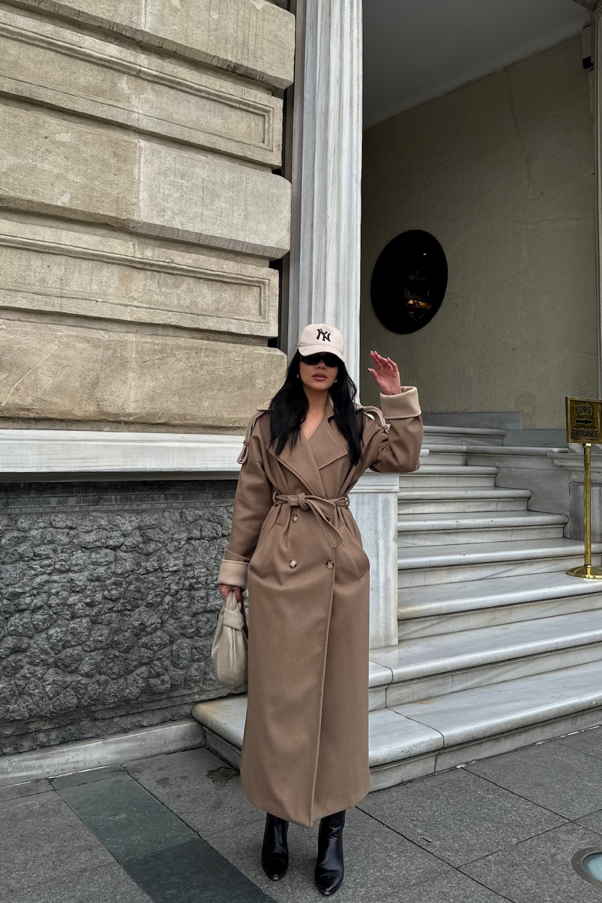 Abrigo Largo Marrón Elegante De Doble Botonadura cantidad