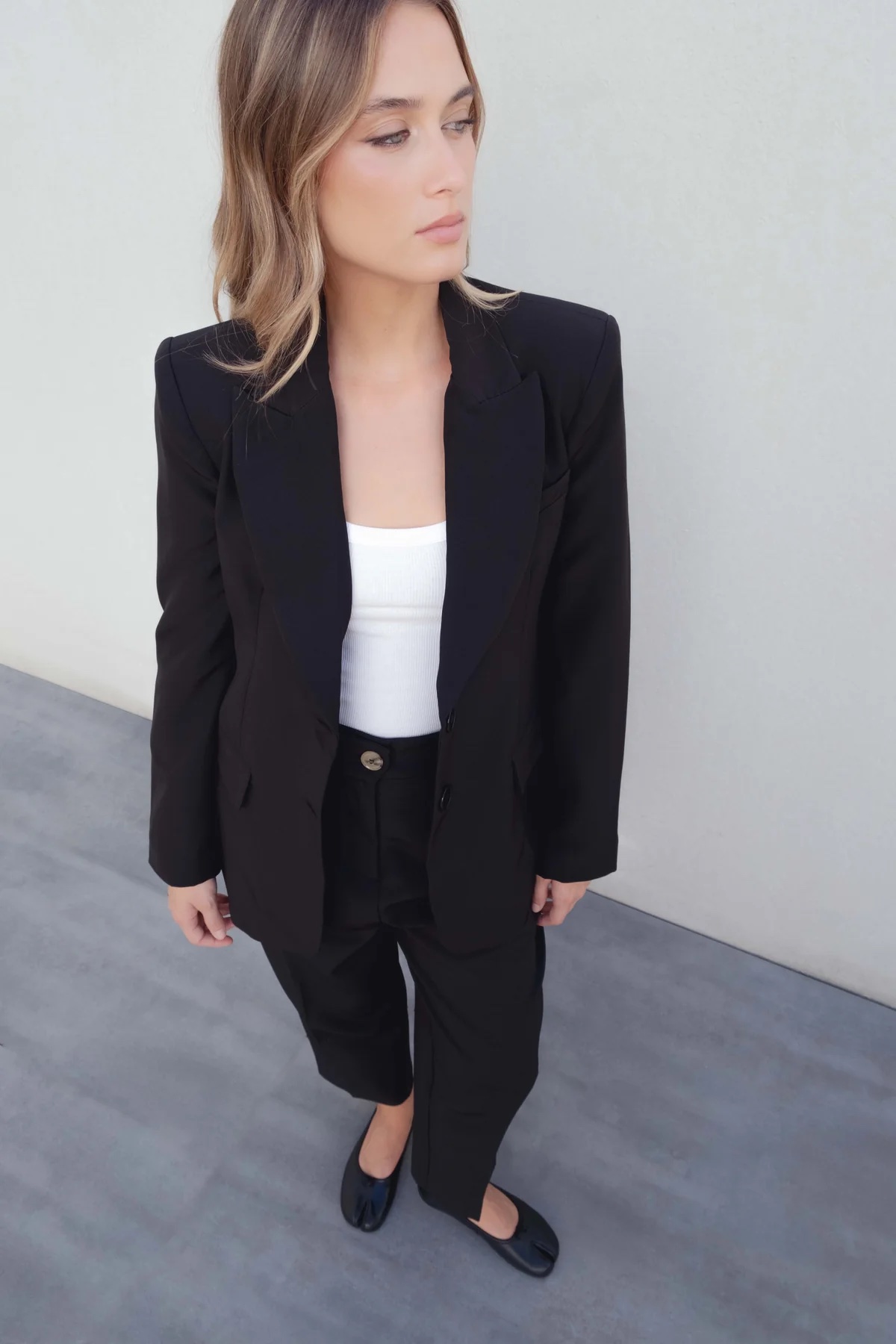 Elegante blazer en color negro con botones en mangas y dos para abrochar . Con solapa. Ideal como fondo de armario